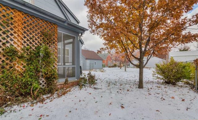 On your way to the back yard you pass through a lovely (and extremely useful) 16 x 10 screened-in porch. Oh, the fun that will be had in this space in the spring, summer, and fall! Lounging, eating, relaxing, entertaining…bug free!! And you have a beautiful view of the large back yard! (Yes, I included a summertime picture…oh, how I miss green grass already!)
