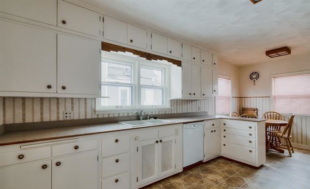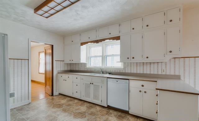 The sizable kitchen has ample counter and cabinet space to store all your kitchen wares. There is a disposal and the dishwasher stays with the home. There is also space for informal, in-kitchen dining!