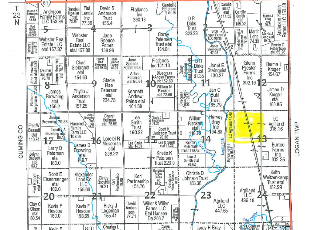 Legal Description: NW 1/4 Sec 13 and Tract NE 1/4 14-T23-R8E Burt Co., NE.
