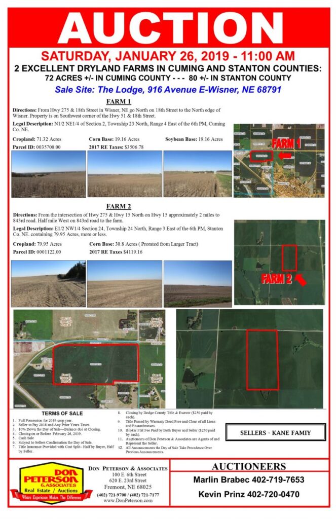 January 26, 2019 – 2 Excellent Dryland Farms in Cuming Co & Stanton Co, NE