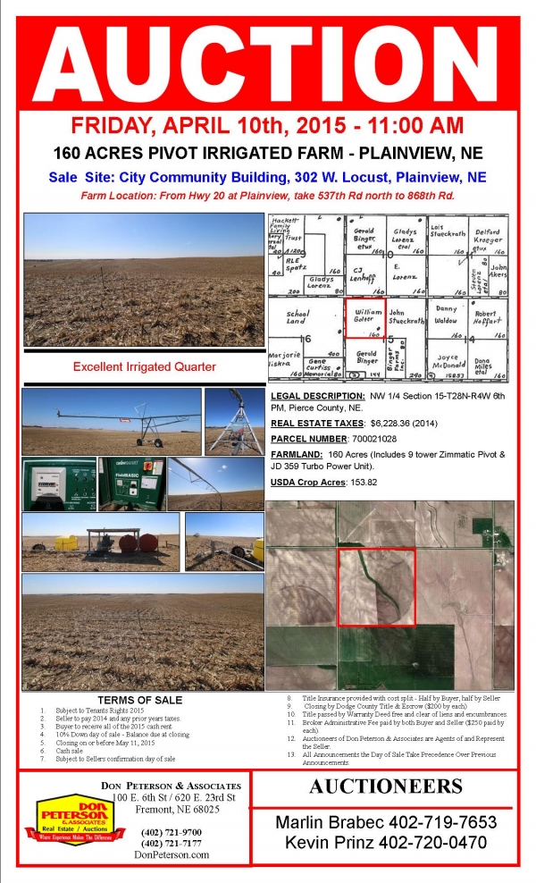 April 10, 2015 – 160 Acres Irrigated Plainview Farm