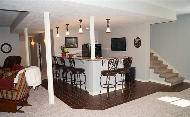 The lower level family room, complete with modern wetbar and fireplace, will be a sure bet for gathering with friends and family or just relaxing.
