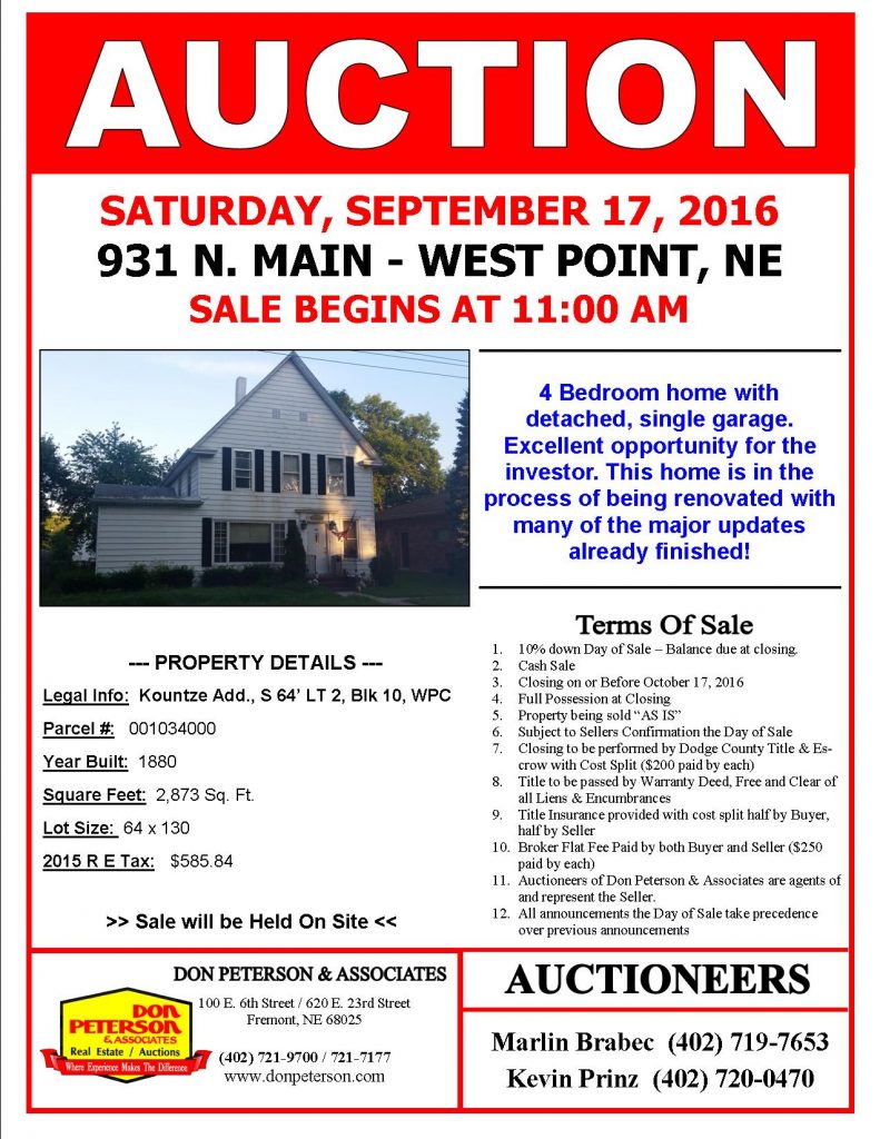 Sept. 17th, 2016 – 931 N. Main, West Point, NE